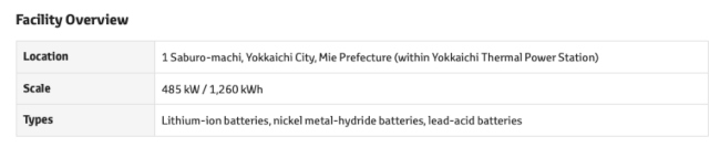 The project plans to operate grid storage batteries for recharge and discharge operations, connected to the Chubu Electric Power Grid Co., Inc. power distribution system from a facility (see below(1)) at JERA's Yokkaichi Thermal Power Station. JERA and Toyota aim to introduce approximately 100,000 kWh of supplied electricity in the mid-2020s, thereby not only reducing the overall cost of the energy storage system, but also contributing to reduction of CO2 emissions.