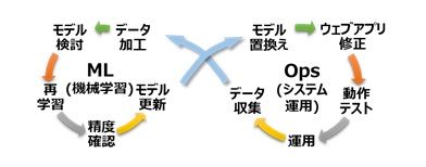 AIを活用したシステムの機械学習(Machine Learning)モデルの開発からシステム運用(Operations)までの一連の流れを円滑に進め、機械学習モデルを効率的に運用する仕組みで、ITシステム整備(機械学習プロセスの自動化を含む)と運用ルール整備がある。代表的なプロセスとして、最新データ追加に伴う機械学習モデルの継続的な再学習がある。
